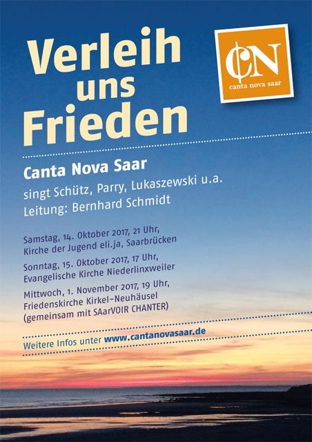 Verleih uns Frieden - so lautet die zentrale Botschaft des Konzertes von Canta Nova Saar mit Chorwerken vom Mittelalter bis zur Gegenwart.